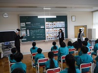 小学校では、アルファベット入りのイラストや外国の写真を見て発話したり、HRT(学級担任)・英語専科教員やALT(外国語指導助手)やJAT(英会話講師)と会話をしたりして、英語に親しんでいました。どの授業も子供たちの元気な声と英会話で思いが通じ合ったときの笑顔であふれていました。