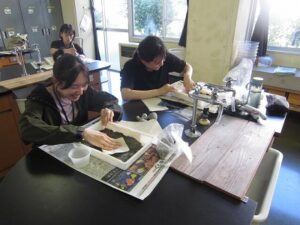 後半は学校に戻り、集めた砂から砂鉄を取り出し、砂鉄を使った教材作りに挑戦しました。